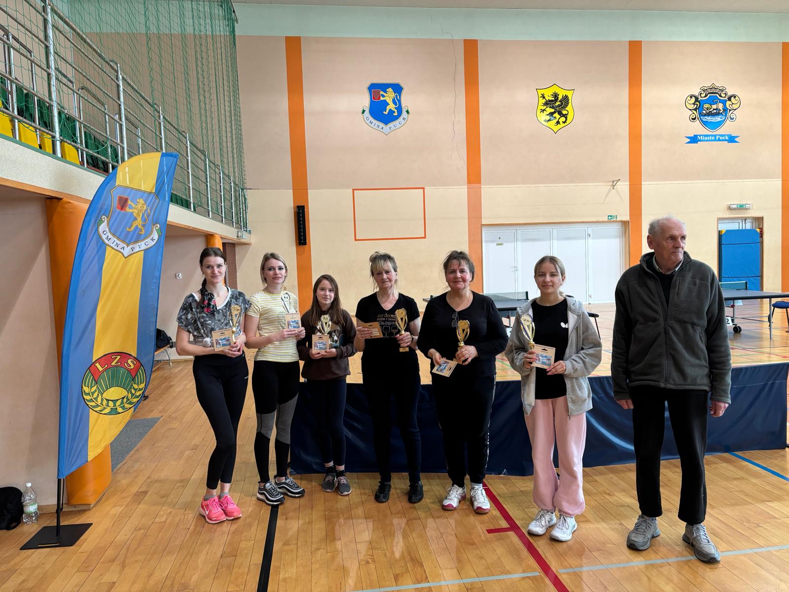 Wśród kobiet bezkonkurencyjna okazała się Karolina Białk ze Strzelna, która wygrała wszystkie swoje mecze. Tuż za nią uplasowały się również zawodniczki ze Strzelna i Żelistrzewa, co potwierdza dominację tych miejscowości w żeńskim tenisie stołowym w gminie. Kolejne miejsca zajęły: Alicja Szopa (Strzelno), Agnieszka Twork (Żelistrzewo), Agata Żocholla (Żelistrzewo), Joanna Szuta (Strzelno) i Maja Żocholla (Żelistrzewo).